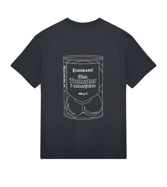 Herr - Oversized T-shirt - Tomatkonserv Svart - Back Print